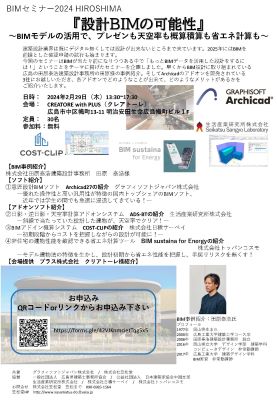 今回のセミナーはBIMが当たり前になりつつある中で「もっとBIMデータを活用した設計をするに は!」ということをテーマに掲げたセミナーを企画しました。早くからBIM設計に取り組まれている 広島の田原泰浩建築設計事務所の田原様の事例紹介。そしてArchicadのアドオンを開発されている 3社にお越しいただき、各アドオンでどのようなことが出来て、どのようなメリットがあるかを ご紹介いたします。