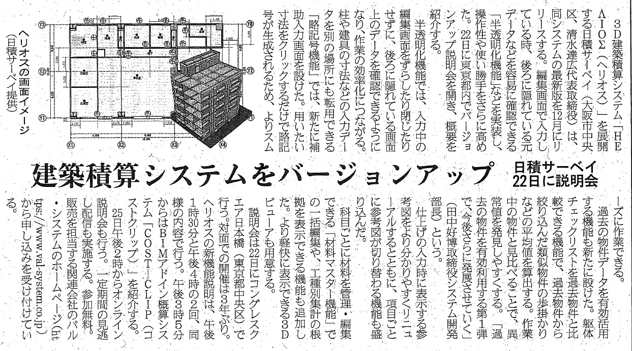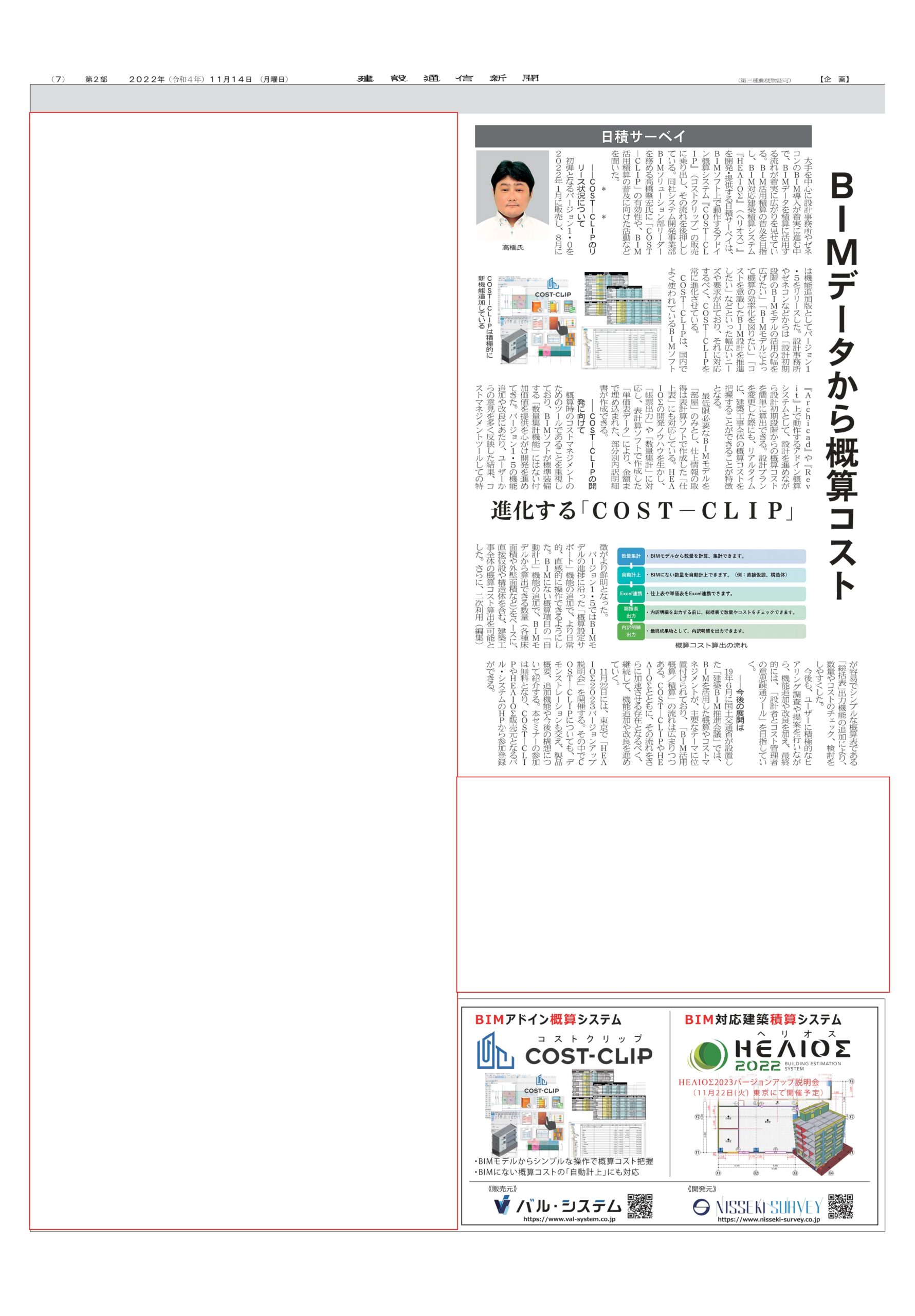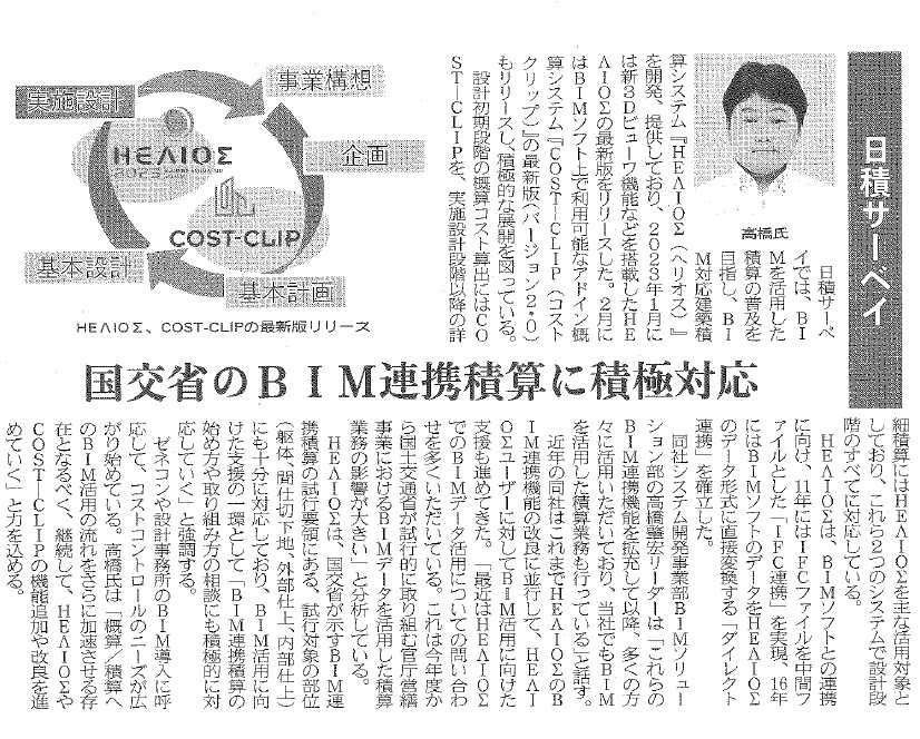 BIM対応3次元積算システム「HELIOS」、BIMアドイン概算ソフト「COST-CLIP」について